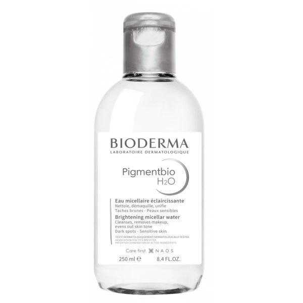 Bioderma Pigmentbio H2O eau micellaire : Haut pouvoir nettoyant et éclaircissant. Haute tolérance. Nettoie et démaquille en douceur le visage et les yeux
