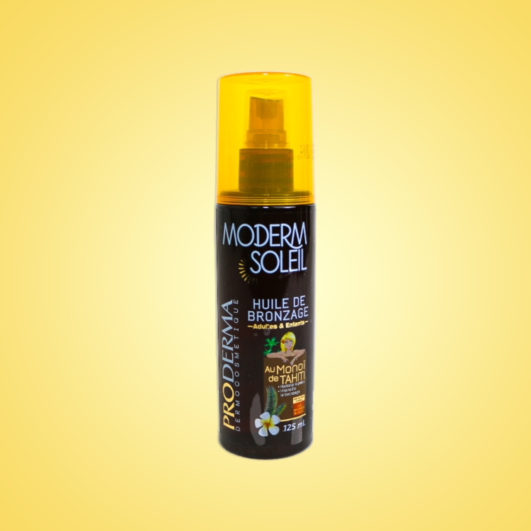 Moderm soleil huile de bronzage intense, riche en véritable monoÏ de tahiti et en accélérateur naturel de bronzage, est dédiée aux amoureux du soleil. L’huile hydrate la peau, intensifie le bronzage pour un effet radieux et satiné, enveloppe le corps du parfum délict des îles lointaines